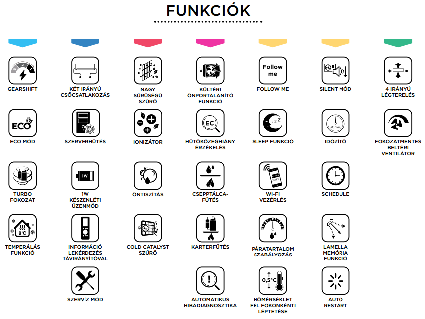 Felszerelés és beüzemelés díja bruttó 55.000 Ft, mely tartalmazza a kiszállást, a készülék helyszínre szállítását, a kültéri és beltéri egység felszerelését, elektromos betáp kiépítését aljzatba max. 5 méterig*, a kültéri tartókonzolt, rögzítő elemeket, a vákuumozást, a berendezés beüzemelését és azzal kapcsolatos dokumentumok kitöltését (pl.: beüzemelési jegyzőkönyv, garanciajegy...), valamint a takarítást.